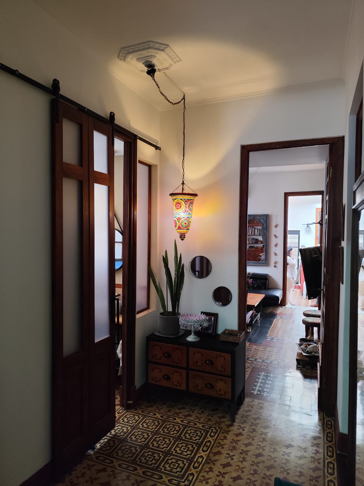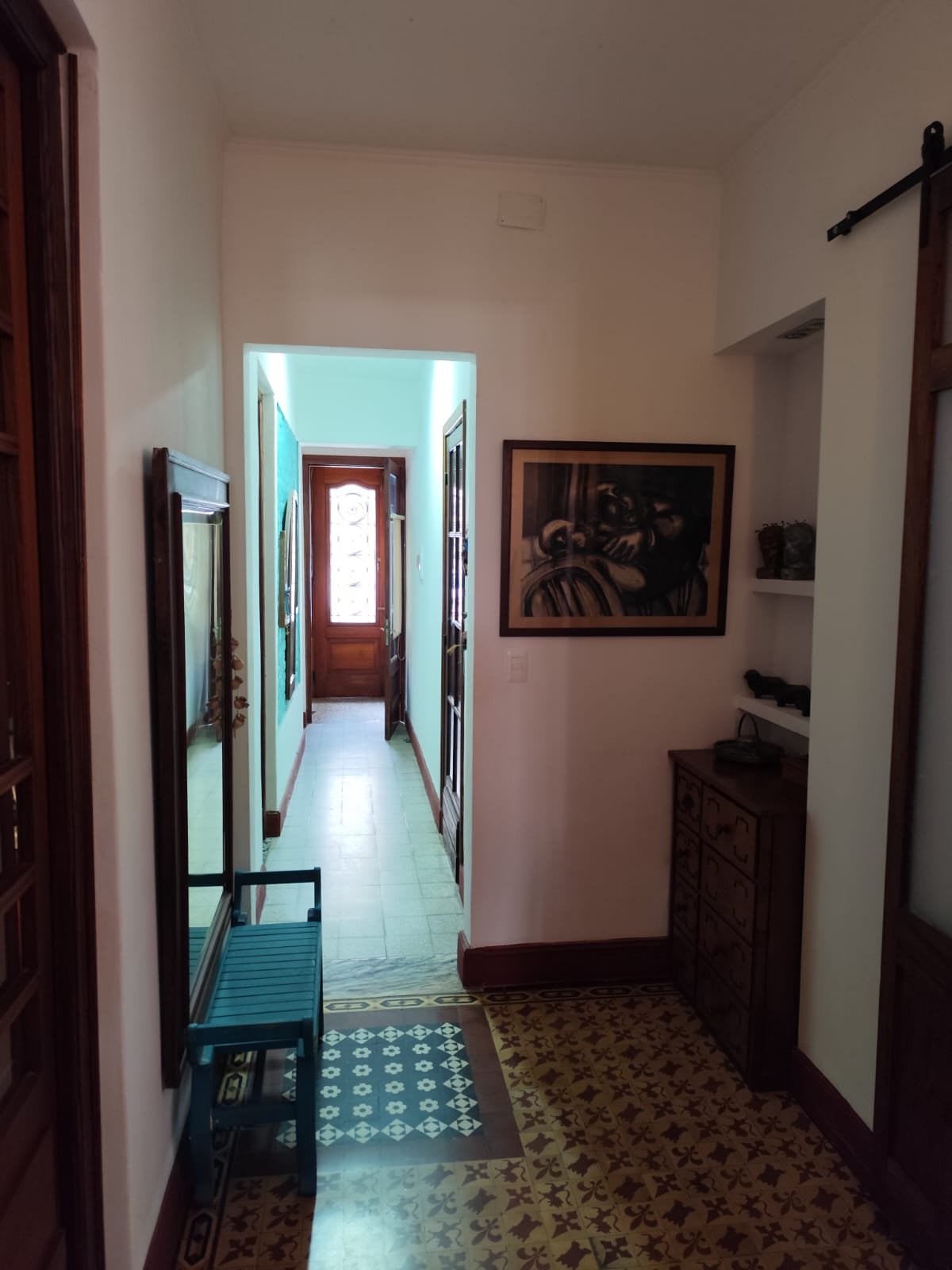 Entrada con un pasillo largo que conecta a los 4 dormitorios, living, y baño social.